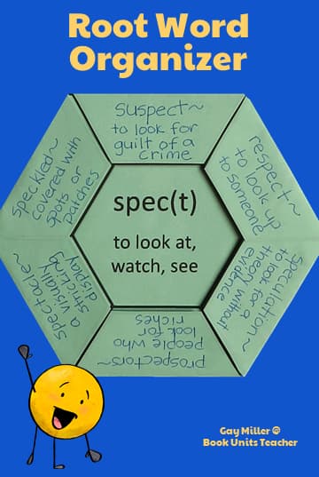 This chapter introduces the root spec, meaning “to look” or “observe.” Students explore how this root appears in words like inspect, spectator, and retrospective, using a foldable organizer to define, illustrate, and apply each term in context.
